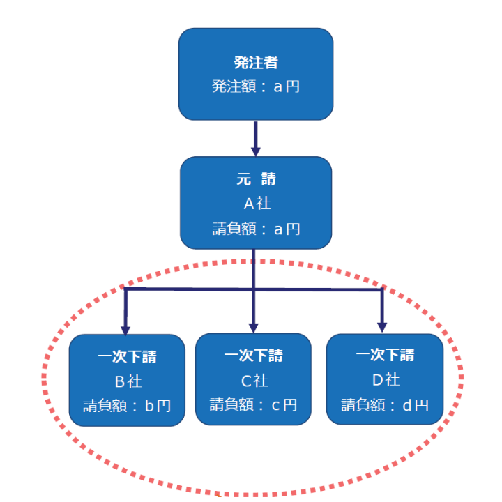 ※一次下請業者が二次下請業者に対して発注する額に制限はありません。